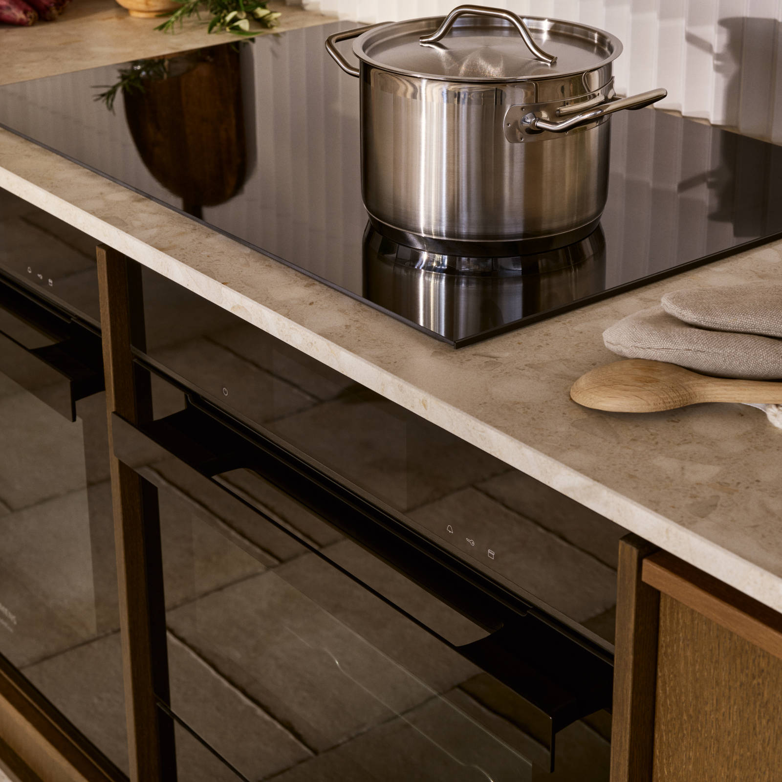 Lisäksi on tärkeää, että keittiösi kahvat vastaavat oven painoa - suuret ja tukevat kahvat sopivat raskaisiin oviin, kun taas pienemmät ja kevyet ovet sopivat hyvin pienempien kaappien kanssa. Suunnittelijamme ovat apunasi, jotta ovien kahvat eivät törmää, kun ovet ja laatikot ovat auki samanaikaisesti.